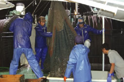 鳥取県網代港昇運丸。沖合底曳漁船95トン。船長含め、乗組員10名。おもに山陰沖を漁場とし、9月〜5月まで 9ヶ月間操業。6月〜8月休業。